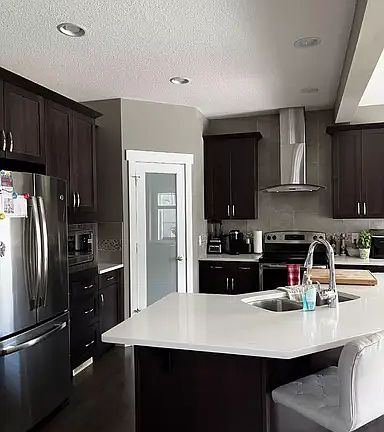 Available October 1st! Stunning 2200+ sqft Family Home in Aspen Trails.Welcome to your next home! This beautifully maintained single-family house, built in 2014, offers over 2200 sqft of luxurious living space, perfect for families. Nestled in a peaceful cul-de-sac within the highly sought-after Aspen Trails neighborhood, this home combines comfort, convenience, and privacy.Key Features:Spacious Layout: Enjoy 4 generous bedrooms upstairs, including a master suite with a walk-in closet and a spa-like ensuite. A large loft room provides additional space for a home office or entertainment area.Modern Kitchen: The heart of the home features dark Maple cabinetry, a corner walk-in pantry, an island, and sleek stainless steel appliances, making it a chef's dream.Bright and Inviting Living Space: The living room serves as a welcoming retreat, highlighted by a cozy gas fireplace and elegant hardwood flooring that exudes warmth and style. The ground floor also features a spacious dining room and a charming breakfast nook, providing ideal settings for family meals and entertaining.Outdoor Bliss: Step out onto the beautiful deck in the backyard, which offers privacy with no neighbors behindperfect for outdoor dining or relaxing evenings.Convenient Parking & Storage: A double attached garage provides ample space for vehicles, while the unfinished basement offers abundant storage.Additional Perks:laundry room equipped with a washer and dryer.Curtains and blinds included.Family-friendly and serene location.Rental Details:Utilities are not included. Furnitures in the photos are not included.No smoking, no pets, and no subletting.Minimum 1-year lease with a damage deposit equivalent to one month's rent. Long-term tenant preferred.Serious inquiries only. We request proof of income (current pay stub or last year's T4), references from previous landlords (if applicable), and consent for a credit check. Satisfactory credit is required for application to be considered. Don't miss out on this fantastic rental opportunity! Contact us today to schedule a viewing or for more information.