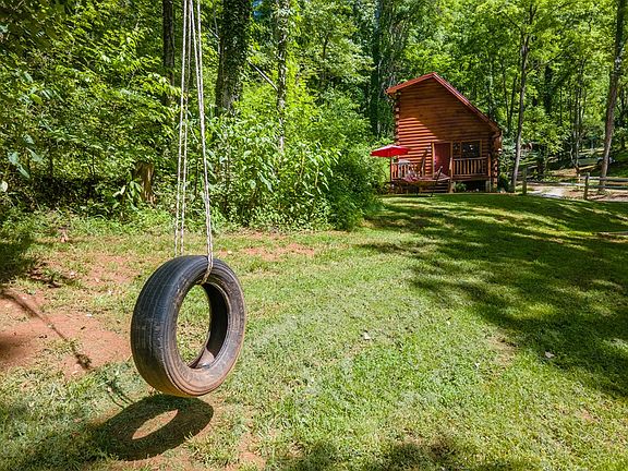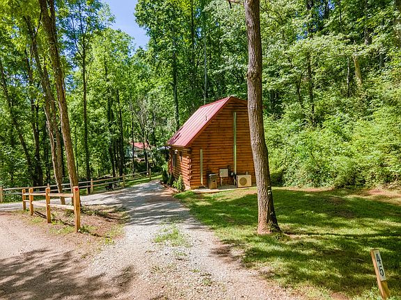 Cozy & comfortable, Built in 2022 - 2 bedroom, 1 bath Real Log Cabin, is located conveniently close to Franklin. Fully equipped kitchen, with all newer appliances & using Starlink wifi (you will need to get your own). Queen Bed, tv, and loft cubby space for work or games. Downstairs bunk room, living room, dining area, laundry & bathroom. The peaceful location has tree canopied outdoor space with rocking chairs, a hammock, a fire pit, and outdoor dining. Very close to the quaint town of Franklin, NC, and all the amenities this area has to offer. Full RV w/septic hookup & EV hookup w/Level 2 charger 50 amp. On .95 Acres, underground power with extra 3 bedroom septic lines installed for another house or cabin to be built. Come breathe the fresh mountain air & relax for a while. Comes Furnished and ready for you to move in and start enjoying our Western NC mountains. Rent it as a Air B&B while your not here to create some income. Its already set up for that and you can continue with it. All appliances & top of the line mini's can be App controlled. NO HOA, steep hills to climb, paved until you reach the driveway with a nice size yard for pets or kids. What are you waiting for?