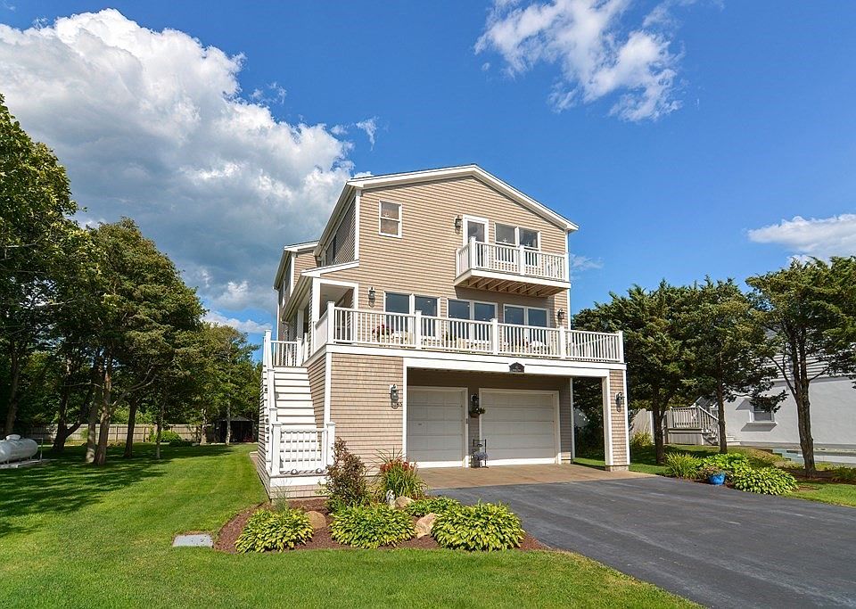 Wake up to breathtaking views of Buzzards Bay right from your balcony at this meticulously maintained home on desirable and rarely available West Island. This home is the ideal spot for entertaining guests, countless outdoor adventures, and achieving ultimate relaxation! The main level is open concept living with the family room, dining room, and kitchen all seamlessly integrated together. Enjoy an expansive living area with fireplace, first floor laundry, spacious kitchen and remarkable views of the bay from its many windows! The upper level features a primary suite with dual closets, jacuzzi tub, shower and a private balcony as well as two additional bedrooms and a full bath. The double lot allows for a roomy backyard complete with a patio, fire pit, two storage sheds, and space for plenty more! This rare gem on West Island is more than just a home; it's a destination for creating unforgettable experiences and a place to embrace the spirit of summer all year long!