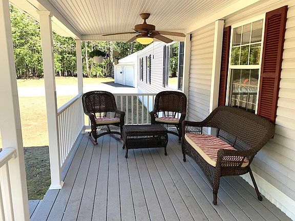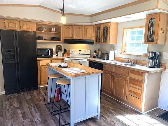 Located down a private lane on over an acre of land surrounded by woods and wildlife, yet walking distance to 38 West (formerly Woody's) and The Milk Room, you'll find this incredibly well-maintained mobile home with detached 2 car garage. Each wing features a bedroom and full bath with the primary bedroom boasting its own private bathroom. Sunny living and kitchen area with new vinyl plank flooring. Recent improvements include a new roof, new water heater and efficient new furnace. By appointment only, please no drive-by's. Offers due by Tues. May 7th at 7P. Response by noon next day.