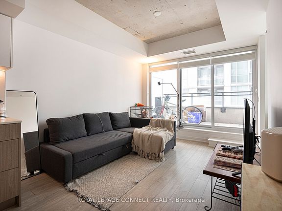 Welcome to Riverside Square in the Heart of Leslieville! Discover urban living at its finest in this spacious 2-bedroom, 1-bath suite featuring a sleek modern kitchen, functional open layout, and no wasted space. Step out onto your 100 sq. ft. terrace - the perfect spot for a morning coffee roast or an evening champagne toast. The second bedroom easily transforms into a stylish home office for your work-from-home days. Enjoy a host of resort-style amenities, including guest suites, a fully equipped fitness centre, a vibrant party room, and a stunning rooftop terrace complete with sun deck and pool-ideal for soaking up the city views. You're just steps from the trendy shops, cafes, and bars along Queen Street East, with quick access to transit on King/Queen and the DVP for an easy commute anywhere in the city. Window blinds installed throughout. Locker included! Your next chapter in Leslieville living starts here.