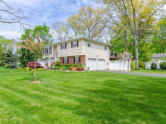 Magnificent Expanded High Ranch features Hardwood floors throughout, updated Kitchen with Vaulted Ceilings granite countertops recessed lighting, skylight & Stainless steel appliances & under cabinet lighting, Living rm with large windows to let in plenty of natural light, Dining rm, 2 dens, 3/4 bedrooms 1 full bath and 1 half bath. large 2nd floor Deck and Patio on ground level, beautiful landscaping. Central Air conditioning , 200 amp electrical panal, 1 yr young Hot water heater, 2 Car Garage & hook up for a generator. & inground sprinkler system.