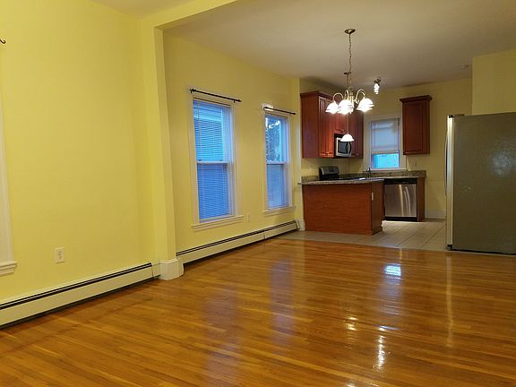 This four bedroom one bath unit is massive covering the entire second and third floors of a two family home in Lower Allston with the convenient 66 bus at the end of the street providing access to Harvard Sq, all of the Harvard Schools including HBS as well as Comm Ave, Beacon St, Coolidge Corner, Brigham Circle, Roxbury Crossing and Dudley Stations on route. First floor of the unit contains 3 queen size bedrooms, a full bathroom and a large open kitchen/dining/living room with an updated and fully applianced kitchen with frig, stove, dishwasher and microwave. The second floor may be used as an oversized bedroom or for a group of 3 could be a great second common living space. This is a great value whether it is used as a three bedroom or a four bedroom. Owner may also consider a no fee option for $3300 First Months Rent and Broker Fee (equal to 1/2 months rent) $4500.00 total due with applications. Security Deposit (equal to one months rent) $3000.00 is due on or before the lease signing. Available for lease starting now through August 2017