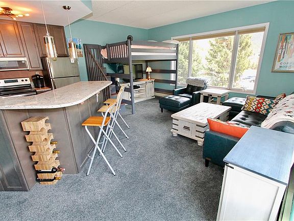 Remodeled studio with fabulous VIEWS of the Ten Mile Mountain Range "SKY" chutes & the SKI SLOPES at Copper. End of hall home offers windows facing both South & East. Located minutes from the American Flyer chair lift, Mountain Coaster & Center Village. Telemark Lodge offers heated garage & outdoor surface parking, indoor hot tub, outdoor deck w gas grill, large grass backyard that's great for pets, bicycle storage & laundry. NO 1.5% transfer fee & NO Village at Copper Fee's.