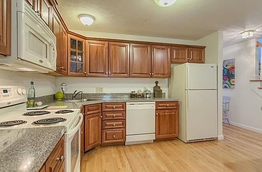 You will be taken aback by the grand, open concept first floor living area! The extra sqft provides plenty of space for living, cooking and dining. Kitchen is complete with upgraded Cherry Cabinets and large center island perfect for entertaining. Living room includes cozy corner gas fireplace and sliding door to the private deck for relaxing. Upstairs the large master suite will surely impress with oversized walk in closet! The space in the 2nd bedroom won't disappoint either! Bathroom includes double vanities, shower, and jetted tub. Great opportunity to join the Bridle Cross condo community with simple, worry free living! No more dreading a snow storm with garage and plowing included! Condo association allows cats.