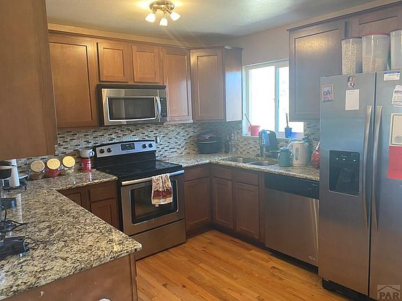 This amazing Bi-Level home features wood floors, lots of natural light, RV parking or extra parking, recently upgraded exterior Stucco and stone finishes and is in a great location close to schools, shopping, and Ft. Carson. This 3 bedroom home comes with a bonus room in the basement that could be used as a 4th bedroom/office/studio space. Bathrooms have Tile showers, and the Kitchen boasts a beautiful tile backsplash with dark cabinets and ample cabinet space. You wont want to miss this opportunity.