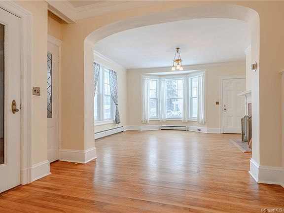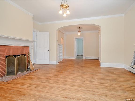 Spacious first floor unit in a beautiful 2 family home. A roomy eat-in kitchen with granite counters and ample cabinetry and storage space leads to a large family room with a gorgeous bay window and a fireplace. An adjoining room with a fireplace that can be used as an office or den and has a door for privacy. There are 2 bedrooms, both with en-suite full bathrooms. High ceilings and hardwood floors throughout the living space along with charming period details. Laundry is in the lower level. Conveniently located close to Exit 11 of I84. No smoking or pets. Owner occupies second floor.