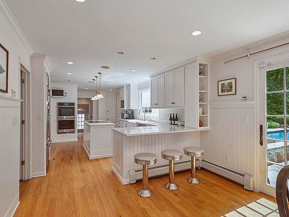 POOL, LOCATION, COLONIAL This home offers it all including five bedrooms, an office and finished basement. This classic colonial has a large living room with fireplace and formal dining room perfect for entertaining and holidays. The spacious eat in kitchen is light and bright overlooking the inviting pool. The kitchen has top of the line stainless steel appliances, white cabinets, eating nook, counter space for enjoying a quick meal and plenty of storage. There is a computer station and tons of natural light. The kitchen leads into a spacious family room with high ceilings a fireplace, wet bar and built ins for movie or game nights. There is a renovated mudroom with front loading washer and dryer conveniently located for pool towels and sports gear. There is a back staircase that