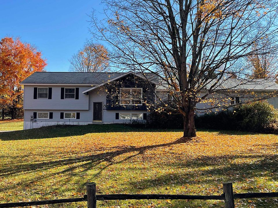 Beautiful raised ranch on a corner lot in a lovely country setting. This is a very quiet neighborhood with no street lights. This house has been very well maintained. Winter enthusiasts will enjoy access to snow sport trails out the back door, 40 mins to an hour drive to major ski resorts (Stowe, Sugarbush, Bolton, Killington) and in the warmer months enjoy this summer oasis for entertaining at the stone fireplace, on the decks and/or at the 16 x 32 in ground gas heated pool equipped with a solar collection cover. Slide, pool furniture, pump etc., included in sale. A lovely oversized living room and three bay garage was added to the original home which had a two bay garage on the other side: imagine the many variations of how you would utilize this space. Minutes from I-89, hospital and services, this move in ready house is a one of a kind must see property to appreciate!