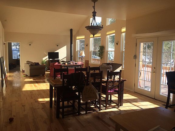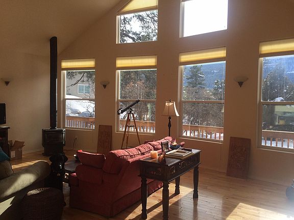 Newer home, built in 2008 and used for only 26 months. Located in a peaceful and beautiful location in quiet community of Ponderosa Village. On dead-end street with trees and abundant foliage for privacy. Large deck for enjoying the views and wildlife. Features include hardwood flooring, large upstairs storage area, granite and tile in kitchen and bathrooms, oak cabinetry with lots of storage in kitchen. Vaulted ceiling and tall windows for lots of natural light and views. Built-in double exhaust fans in living room for great circulation. HOA fees include snow plowing up to driveway. Appliances included. Furnishings negotiable. Income-producing vacation rental potential.