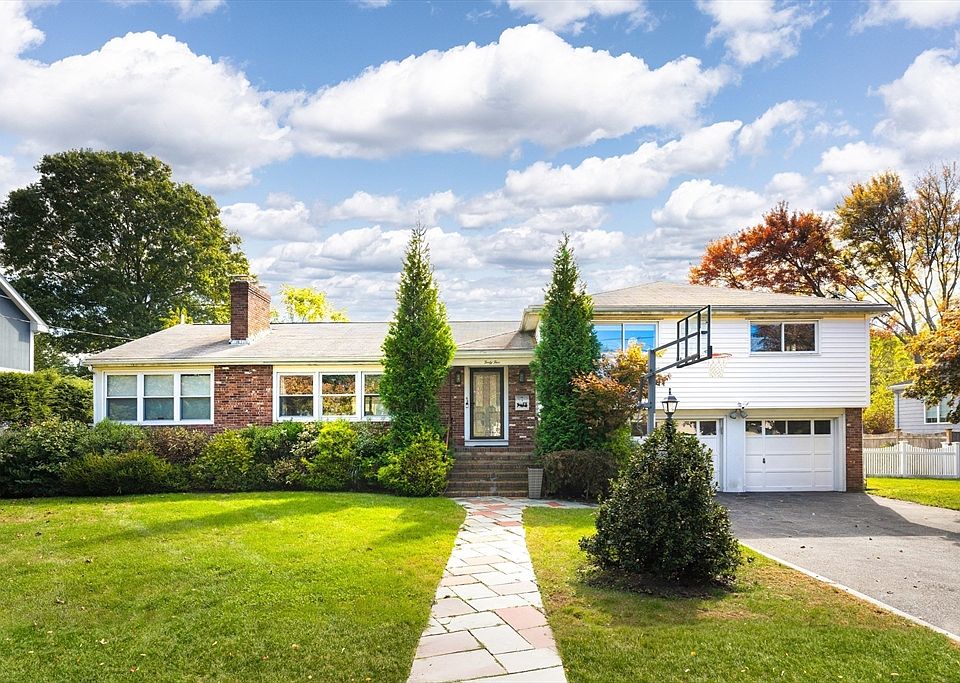 Abutting conservation land by Newton South High School, this updated home includes central AC and a direct entry two car garage. It's about a mile to the villages of Newton Centre & Newton Highlands plus Chestnut Hill shopping, and under a mile to the public schools. On the main level is a spacious living room with a fireplace that opens to the kitchen/family room area. Renovated in 2015, the kitchen has a huge island with a breakfast bar & stainless appliances. It is open to a dining area and the family room. French doors lead to a private office and sliders lead to a bright sunroom kept comfortable with a mini-split. This room has a door to the deck & fenced yard. A few stairs up from the entry lead to the main bedroom area including the primary bedroom with an en suite bathroom, plus two more large bedrooms, the second full bathroom & laundry. On the entry level is a mudroom with a door to the garage, fourth bedroom & third full bathroom. Enormous finished lower level bonus room.