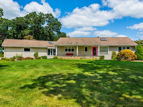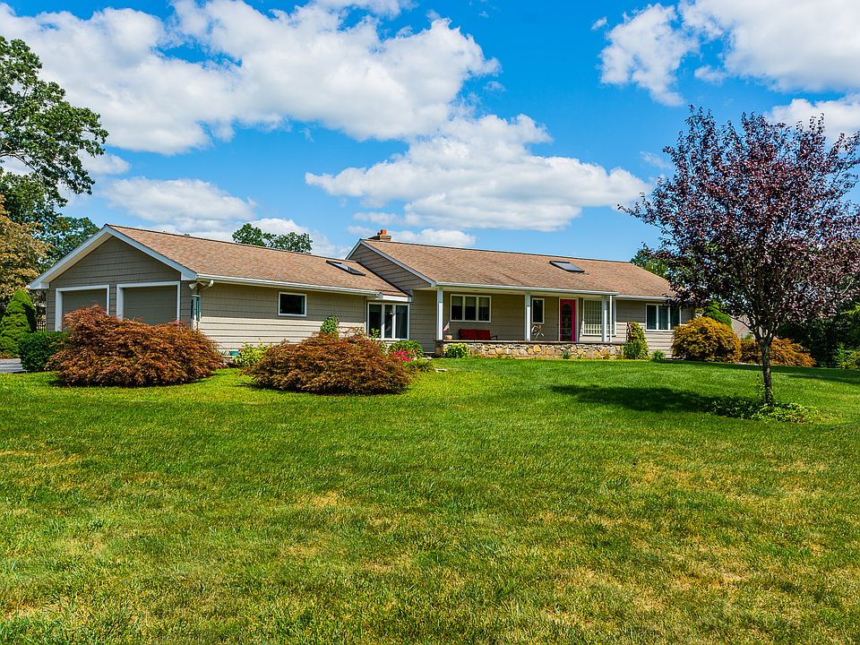 *** 3D Tour 24/7 (link to tour varies per venue) *** Wanting to downsize into a 2 BR turn-key Ranch style home in a neighborhood where homes have some elbow room? You found what you've been looking for with the added bonus of a HUGE detached outbuilding that accommodates 7 cars and even has a lower level workshop! The main home is maintenance-free with Cedar Impressions vinyl siding and an attached 2 car garage. It has professional landscaping, a Bluestone covered front porch, Bluestone rear patio area with gardens, outdoor fireplace, an in-ground Kidney shaped gunite pool (not open this year), and a large cleared lawn area for backyard fun. The interior of the home doesn't disappoint with vaulted ceilings, Andersen windows, Skylights, Corian/Granite Kitchen countertops including electric cooktop and wall ovens. The Living Room has maple flooring and a masonry wood-burning fireplace. Foyer entry has marble flooring. MBR has Maple flooring and a full bath en suite. The 2nd Bedroom serves as an office area. Ideally, the full bath could have a door added to the hallway for guest access. There is a full basement with walkout door to the back yard. The detached outbuilding can easily accommodate 7 cars and it has an attic storage area above + a 34.25' x 24' Lower Level workshop! VALUE ANALYSIS - It would cost $75k-$100k for a 5+ acre lot, then $75k-$100k for site work so that's $150k-$200k BEFORE spending at least $100k on the outbuilding. House cost is just $64,900 or $36/sf !
