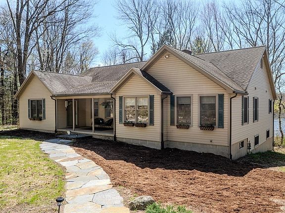 Perched above Nichols Brook Pond, you'll be delighted to discover this "one of a kind" sprawling, open & airy ranch! A custom Goshen stone walkway leads you to a sweet covered porch. Gleaming maple floors run throughout the main living area to a spacious living room featuring a gorgeous fireplace w/ local Goshen stone hearth, custom built-in shelving, & a slider to deck overlooking the pond where you'll see beavers & otters frolicking. The kitchen features an island w/ seating, SS appliances and overlooks the massive dining room. A cozy family room provides an additional entertaining space. On the way to the clever mudroom room w/ laundry, you'll see the oversized pantry, which provides custom shelving & is plumbed for a sink. The primary suite features a walk-in closet, water views, & an en-suite bath w/ jacuzzi tub. 2 additional bedrooms plus a full guest bath round out the main level. The walkout lower level features built-in workbenches and a partially plumbed full bath.