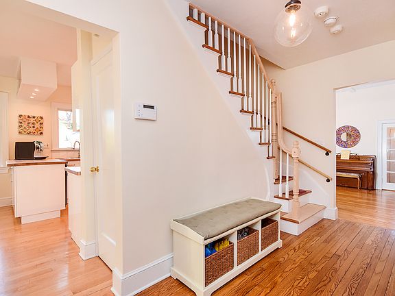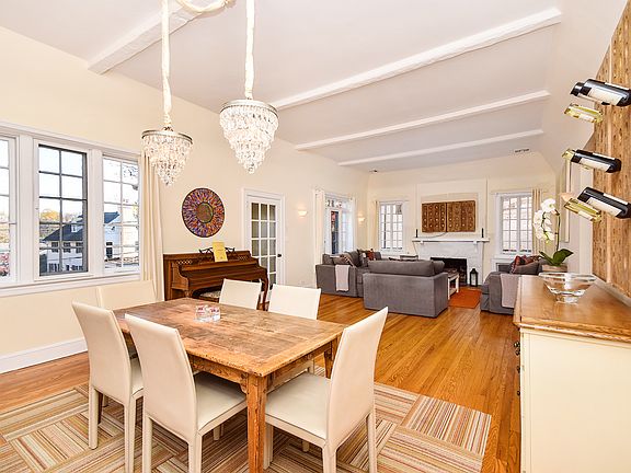 Soho and Brooklyn wrapped up in a beautiful, sun-filled Larchmont Gardens home located just off the scenic brook, perfect for daily walks. This house has an open floor plan with 10 ceilings and oversize windows. An entrance hall leads into the living room with a wood burning fireplace and dining room with built-ins. A trendy dine-in kitchen leads to a custom built office with tons of light and sliders to the backyard. This room can also serve as a sunroom or den. The first floor also offers a guest suite with a newly renovated full bath. The second floor has three bedrooms and a luxurious renovated hall bath with radiant heat. The incredibly private fenced in backyard has a patio. This recently renovated home has many modern amenities including 2 zone central air, hardwood floors and beamed ceilings. Just a short walk to Murray Avenue Elementary School, close to town, shopping and restaurants and Metro North with its 30 minute commute.