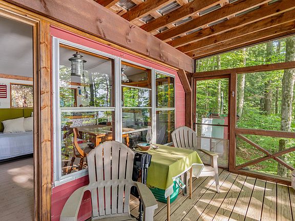 Escape to this rustic, well-maintained seasonal cabin on Bristol Pond, also known as Winona Lake! Situated on almost a full acre with direct lake frontage, this property offers the perfect waterfront retreat. Enjoy direct lake access—launch your fishing boat or paddleboard right from the dock. After a day on the water, unwind in the cozy cabin by the woodstove or relax in the breezy screened porch. The cabin features two separate living spaces: * **Main Building:** Includes a gas range, wood stove, dining area, rinsing sink, daybed, and a large cooler for perishables.* **Second Building:** Offers an additional sleeping area with great views of the lake. Close to the main building, you'll find a freshly painted outhouse with a double composting toilet. For outdoor enthusiasts, take a hike through the woods and then refresh yourself in the outdoor shower area, using water warmed by a solar bag. This off-grid sanctuary is completed by western-facing views perfect for sunsets, two RV batteries for lighting, a fire pit, and a picnic table.