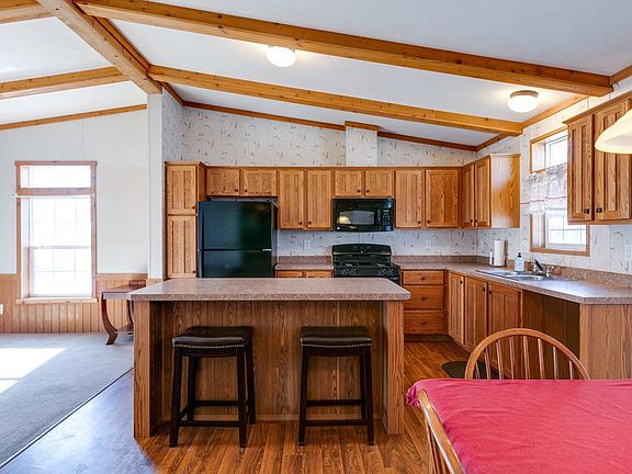 Beautiful and Spacious Well Maintained 3 Bedroom, 2 Bathroom Double Wide with vaulted ceilings and open floor plan. Kitchen/dining combo offers real wood cabinets, appliances, island counter with extra cabinet space and additional seating. Vaulted ceilings lead into a cozy living room accented by a corner stone wood burning fireplace. Transom windows surround the large space enhancing the natural sunlight. convenient laundry room/mud room with built-ins and work sink. Featuring large bedrooms, one with a walk-in closet with a shared full bathroom, along with a Master Suite on the end of the home that includes walk-in closet, full bathroom with double sinks, linen closet and walk in shower. Located in Buffards Riverside Estates on a rented lot-just minutes from the PA ; NY Border. Buyer(s) will need to be approved by Park Owner.