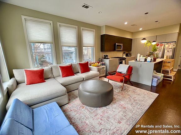 Available July 1st -This luxury condo built in 2019 has it all! The apartment features an open concept living space with breakfast bar island, quartz counter tops, stainless steel appliances including a beautiful gas range, modern cabinetry, large private balcony w/gas grill included, two stunning bathrooms with heated floors, deep soaker tub, dual vanities and rainfall shower head, large walk in closet in the primary bedroom and lots of other closet storage, in unit full size washer/dryer, central AC, and last but not least 1 garage parking spot included! The garage also has an EV charger available to all residents, communal bike storage, and a private storage locker. The building includes a gym for residents only. The location is great as well with Orange line and the Southwest Corridor park outside your front door, and the Arnold Arboretum just a few minutes away. Call or email us today to schedule a tour of this beautiful apartment before its gone. FIRST, SECURITY, BROKER FEE, $250 MOVE IN/OUT FEE DUE W/1 YEAR LEASE. PETS NEGOTIABLE.