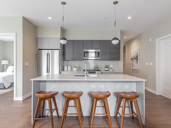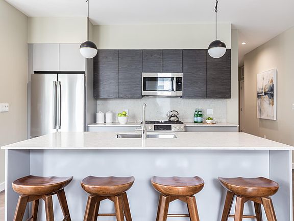 Top floor corner unit 2 bed 2 bath condo in newly constructed (2019), pet-friendly, elevator building. Nestled between Jamaica Plain's Southwest Corridor Park and the emerging Washington Street corridor this building features garage parking, common roof deck, exercise room, digital package concierge, EV charging stations, pet groom/wash station and bike storage. This penthouse unit features a private wrap-around corner balcony, private storage, in-unit laundry, Bosch and Thermador appliances, gas cooking, hardwood floors throughout, and smart home technology. 45 On Burnett incorporates the outdoors in with sleek designer finishes and signature architectural details. The property is adjacent to residents' planting garden / dog-walk park, steps to Southwest Corridor Park, just moments to the Forest Hills T station, Zipcars, restaurants, markets, breweries, and more. Broker fee paid for immediate move-in! Book a tour today!