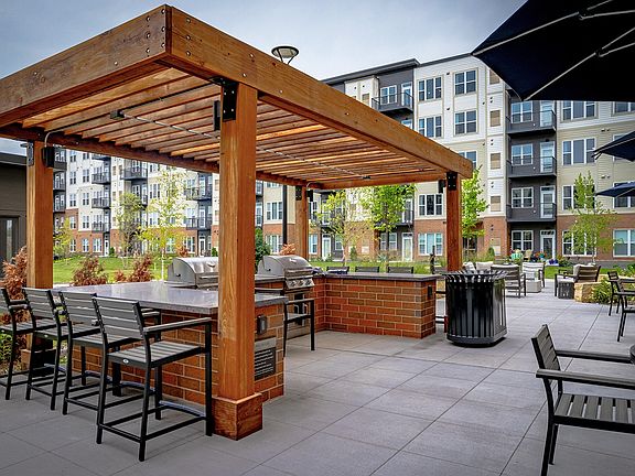 - Exterior features: 24-hour emergency maintenance service, 9' ceilings, Balcony, Barbecue, Beauty salon, Cards & crafts room, Clubroom, Community kitchen, Courtyard, Easy access to 35E, 494 & I-94, Electronic key FOB entry access system, Gas fire pit, Granite countertops, Linen closets, Outdoor screened-in shelter, Package Receiving, Pet-friendly community, Short walk to Signal Hills Shopping Center, Smart maple ginger wood cabinetry, Theater
