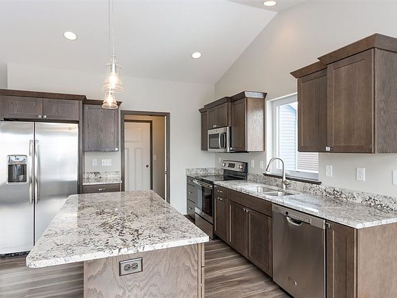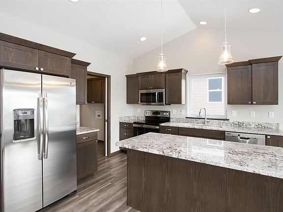 Open and efficient floorplan. Kitchen has center island with breakfast bar that overlooks the spacious living room and dining area. Mudroom / laundry between the kitchen and garage. Master bedroom has a trey ceiling, walk-in closet and private bath. Full finished walk-out lower level has a large family / rec room and adds two bedrooms and another full bath. Very large storage room, 3-car garage, deck and patio. A very nice home with modern finishes.