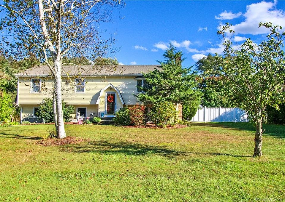 Welcome to 45 Caribou Drive! Pride of ownership is apparent throughout this 3BR home. The foyer greets you as you walk up to the living room and formal dining room with beautiful hardwood floors. The dining room leads out to the 2-level deck, pool and spacious backyard that is great for entertaining. As you walk into the kitchen the skylight soaks it with natural light, highlighting the breakfast bar, granite countertops and tile flooring. Down the hall is a full bath with a skylight and the 3 bedrooms. The master bedroom has a full bath and hardwood flooring. Two other good size bedrooms complete the main level. The lower level has a family room with a fireplace and carpeting to keep you warm and cozy in the winter months or use it for a great home office. The central AC will keep you cool during those hot summer days. Other features include a 2-car garage and a high efficiency condensing gas boiler. Great location for walking, biking, etc. Easy access to schools, highways and shopping.