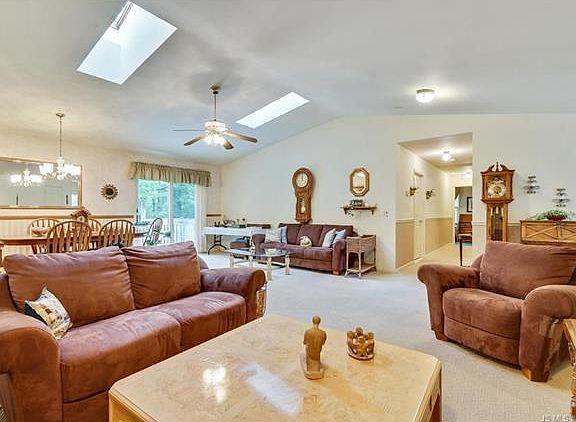 Peace and Quiet. Located in a secluded family neighborhood, this cozy 3 bedroom / 2 full bath ranch has it all. The great room features a vaulted ceiling and skylights which allow an abundance of natural light. Both the great room and master bedroom have sliding glass doors which lead to a rear deck and extra deep, treed rear yard. All rooms are generously sized and the oversized garage contains plenty of room for cars and storage. There is a huge unfinished basement which would be perfect as a workshop or finish for even more living space. High quality Lennox HVAC system and Lennox whole house generator are less than 10 years old and serviced regularly. Other amenities include underground sprinkler system, electronic air filter system and ramp in garage.