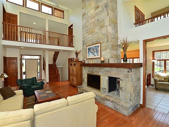 A Private Retreat! Contemporary Country Home nestled on 10 acres w/a stocked pond & acres of woods & trails for hiking or hunting. This is a spectacular custom built Brick & Cedar 4 bedroom, 3.5 bath home. There is a 2 story great room w/a dramatic floor to ceiling 2 sided stone fireplace & is flooded w/natural light & ideal for entertaining. The great room opens to a massive side deck w/awning overlooking the peaceful surroundings. The main level features HW floors, a LG kitchen w/granite counters, SS appl, a cooking island w/counter, dining rm, reading rm, laundry, half bath & 2 spacious bedrms w/jack & jill bath. Upstairs find the master suite w/ensuite, WIC, gas fireplace, sitting rm & the 4th bedrm w/spacious private bath. The lower is finished w/2 LG game rooms, a 22x10 office, storage rooms, a WD burner & is plumbed for an add. bath. The grounds are beautiful w/flowering trees & evergreens. The private driveway is all concrete. New metal roof & paint April, 2018.