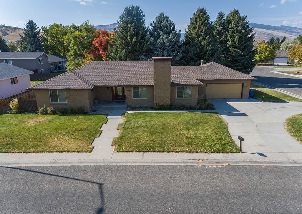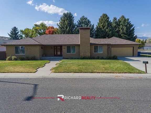 This low-maintenance 2-bedroom, 2-bath brick home offers comfortable living in a highly desirable Cody, WY neighborhood. The home features beautiful wood floors, custom built-ins, a gas fireplace, and a spacious kitchen with durable concrete countertops. The fenced backyard provides privacy and includes a covered back patio with large pine trees for added shade and ambiance. Conveniently located, this property is within walking distance to schools, shopping, post office, Rec Center, and the local golf course. This is an ideal home for those seeking a well-maintained property in a central location. Call today!