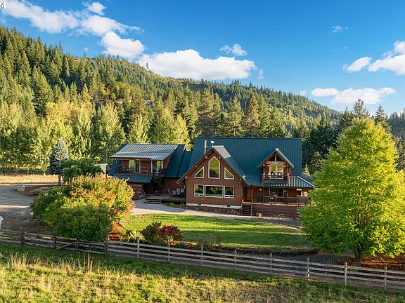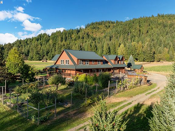 Immerse yourself in the unparalleled beauty of this custom-designed estate, offering breathtaking, unobstructed views of Mount Adams and over 900 feet of serene White Salmon River frontage. Nestled on 20 pristine acres, this property features year-round natural springs, irrigation-fed ponds, and fully irrigated organic pastures, orchards, and greenhouses, creating an idyllic haven of tranquility and sustainability. The 3,760 sq ft residence seamlessly blends comfort and elegance, showcasing an open-concept floor plan with soaring vaulted ceilings, exposed timber beams, and expansive windows that frame captivating views from every room. The main-floor primary suite serves as a true sanctuary, providing direct access to the wrap-around deck and panoramic vistas of the surrounding landscape. Additional highlights include private guest quarters or a mother-in-law suite, a spacious 7-bay shop, and a well-appointed loafing barn, all set within meticulously maintained grounds. This extraordinary estate offers a rare blend of comfort, seclusion, and self-sufficiency, perfect for buyers seeking a refined yet serene lifestyle. Cedar Springs Farm is more than just a home—it’s a lifestyle. With an ideal balance of privacy and sustainability, this estate presents a unique opportunity to own a piece of paradise in Trout Lake's Organic Valley located in the Pacific Northwest.