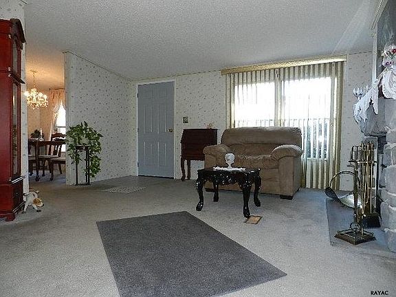 This wonderful doublewide in located in Manchester Boro in the Dauberton Mobile Home Park. Outside you will find a covered front porch, a shed, storm windows, storm doors and a covered deck with a handicap accessible ramp. Entering the home you will be greeted by the foyer with ceramic tile flooring and a coat closet. The living room wall to wall carpet, ceiling fan with light and a wood burning fireplace with an electric insert. Throughout the home are cathedral ceilings. Next is the dining room with wall to wall carpet followed by kitchen featuring vinyl flooring, a ceiling light, skylight, island, hood fan and door to the front porch. The laundry closet has shelving. The main bathroom has carpet and a single vanity. The first two bedrooms each have wall to wall carpet, a ceiling light and a walk in closet. The master bedroom includes wall to wall carpet, his and her closets, a private bathroom with carpet, a double vanity, shower and soaking tub.