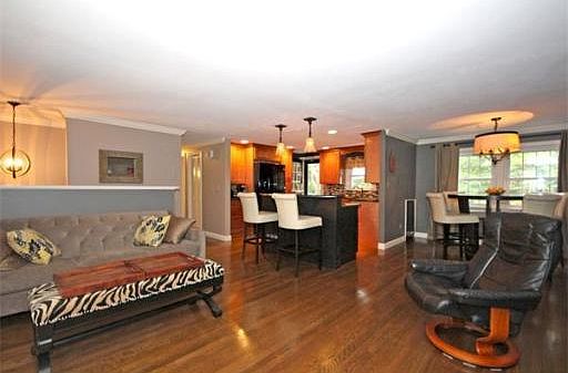 Stunningly renovated 3 to 4 bedroom home. OPEN FLOOR PLAN! Kitchen renovated in 2011: Wood Cabinetry, Granite Counters, tiled backsplash, GE Profile Appliances. Crown Molding & Refinished Hardwood Floors thru out first floor. Gas Fireplace w/Granite Hearth & Stone Surround. Renovated baths too! New Stone Patio w/Stone Firepit, 2 Car extra large Garage w/Cedar Closet &Storage. 2 Sheds. Roof-2012. Many Replacement Windows. At the end of the day, sit on the 2-TieredDeck overlooking scenic POND & grapevine covered pergola. Large fenced in side yard. 2 storage sheds. Nearby walking trails. LL has great potential for in-laws!