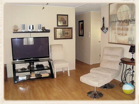 Own a piece of paradise with this lovely two bedroom/two bath home that features laminate flooring throughout and ceramic tile in baths, beautiful built-in hutch in dining room and comfortable bedrooms. Indoor laundry room with washer and dryer. Hot tub and beautiful furnishings are included in price. Vinyl siding new in 2011. Great corner lot with mature landscaping and view of the river from the lanai. Newly sculptured driveway in 2012 adds to the appeal. This well-maintained home is a must see!Purchase for yourself or as an investment property as renting is allowed. Seasonal rentals are popular in community. Purchase only the home and lot rent is $640 monthly or purchase the share for $47,250 and monthly fee is only $255. Monthly fee includes trash removal, recycling, water/sewer, lawn mowing and edging. Orange Harbor is an over age 55 resident owned community located close to shopping, restaurants and beaches.