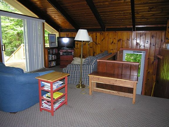 Spacious 4 bedroom chalet in the desirable Cathedral Ledge area of North Conway. The warmth of knotty pine, rustic beams, double sliders to a great large deck and a toasty wood stove to sit by after a day on the slopes are all calling your name. Efficient new heating system, hot water heater, newer roof, and replacement vinyl windows make this your carefree vacation get-away. This charming chalet is close to Echo Lake State Park and the National Forest for hiking and lots of outdoor fun!