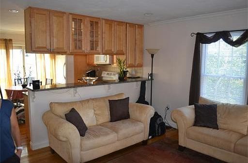 Well maintained and immaculate townhome! Just steps to the heart of Moody St, restaurants, T stops,and shops.This quiet END unit has it all, hardwood floors, eat in kitchen with granite breakfast bar counter, sliders to deck. Master bedroom with cathedral ceilings and great arched window that brings in tons of natural sunlight. One car heated garage with storage. Convenient office loft with in unit washer and dryer. Low Condo fees!! This is a must see with lots of extra touches at a fabulous price!!