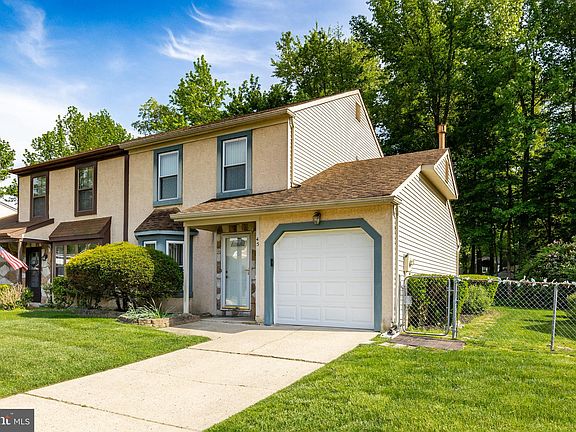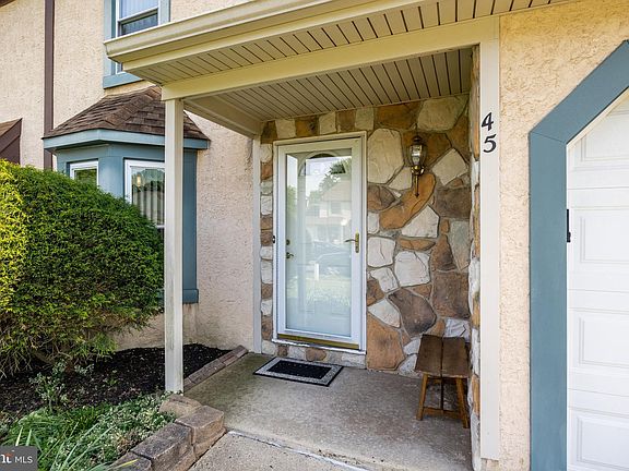 Welcome to 45 Christopher Road, in Rainwood. This twin home has an inviting open floor plan allowing plenty of daylight to flow through. Gleaming hardwood floors in Foyer, Dining Room and Living Room. The kitchen boasts stainless steel refrigerator and oven, pantry, beautiful granite countertops, upgraded stainless steel sink and faucet, and high end tile backsplash. The living room is large and very comfortable, with a gas fireplace with wood mantle and surround. From the living room, there is access through an upgraded sliding glass door, to the beautiful backyard that is surrounded by a fence covered in ivy. A mature tree line behind the home offers a relaxing and peaceful view. For your convenience, the yard also has a portable vinyl shed for storage. Inside the home, the main floor consists of the foyer, coat closet, eat-in kitchen, dining room and living room, half bath and laundry room which has inside access to the garage. The washer is new. The HVAC system was installed in 2019. Two very spacious bedrooms make up the second story of this home. The large primary bedroom has a view of the backyard. With skylights, a large closet, and access to the full sumptuous bathroom, this bedroom is a nice place to relax. The luxurious full bath has a whirlpool tub, a separate stall shower and double sinks. It also has access to the hallway. The second bedroom has a ceiling fan and has recently been freshly painted. The stairway and upper level have new plush carpeting. Rainwood is conveniently located close to shopping, dining, schools, and major roads. There is no association fee, these are twin homes and you own the land. There are two attics for storage with pull down stairs, just add plywood flooring! Don't miss this one!