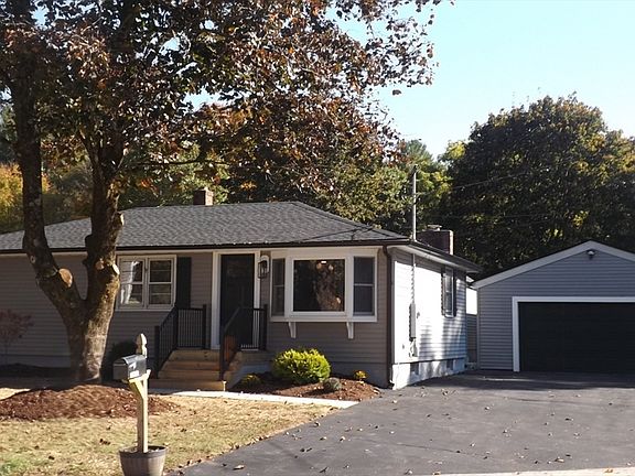 This updated 3-bedroom, 1-bath ranch-style home is situated on a cul-de-sac at the end of this dead-end street and is conveniently close to area amenities. Updated attractive easy maintenance vinyl plank flooring throughout the house. A newly renovated kitchen with stainless appliances and quartz counter tops is fresh and bright. Plenty of room for large family gatherings. The generous sized family room has a french door and rustic stone fireplace. Updated bathroom with subway tile. New roof, gutters, shuttters, exterior lighting, garage door and front stair case offers great curb appeal. A short walk to Treasureland, a fun park for the children. The .81 acre lot is flat and is backed to hiking and biking trails, Hodges Pond and hole one of the disc golf course fantastic for outdoor enthusiasts. Potential to finish the basement. Minutes to Rte. 395, 290, 20 and Mass Pike.