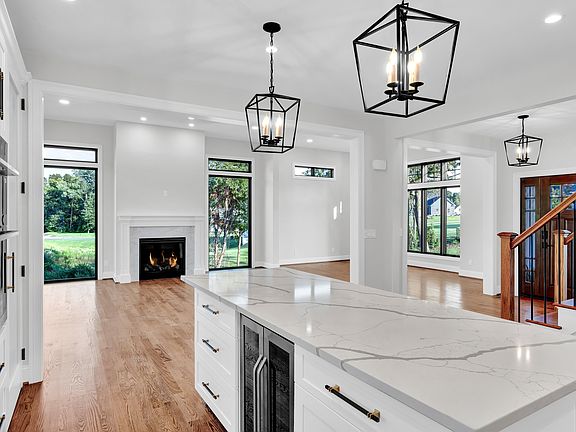 Just finalized - Ready to move in - Presenting an exquisite Colonial Farmhouse" that seamlessly combines elegance and functionality. This custom-built residence features a sophisticated open-concept flr plan & high-end finishes throughout. howcases a stunning blend of white and dove gray vinyl siding, complemented by high-quality Marvin wooden casement windows, creating a clean and refined exterior. 1st flr boasts impressive 12-foot ceilings in the living & dining areas, framed by oversized windows that flood the spaces with natural light. Gourmet kitchen is designed for both style and functionality, featuring a large island, an oversized 36" cooktop, and a wine refrigerator integrated into the island. Quartz countertops and a marble tile backsplash add a touch of luxury.The first-floor master bedroom includes a spacious walk-in closet and a master bath with a dual-sink vanity, a standalone tub, a roomy glass shower, and a marble-tiled heated floor for ultimate comfort. A compact office/study area is conveniently located off the dining room. The oversized, partially covered back porch is equipped with spotlights, a fan, and an outlet for a TV, perfect for outdoor relaxation and entertainment. The second floor features a large recreation/game room and three additional bedrooms. One of these bedrooms includes a private bathroom and a walk-in closet, making it an ideal guest room. This home offers an unparalleled living experience with its thoughtful design...