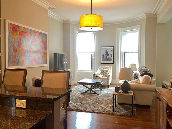Concord Square! Central AC, Private Deck! This pristine & sun splashed 1+ bedroom features 3 exposures (corner building). Open kitchen w/granite and stainless steel appliances. Spa bath w jacuzzi, in-unit laundry. Spacious Living room with 10 Ft. ceilings. Flexible alcove off of LR could be used as an office or converted to a den/2nd bedroom. Central AC, and PRIVATE DECK! Available Now!