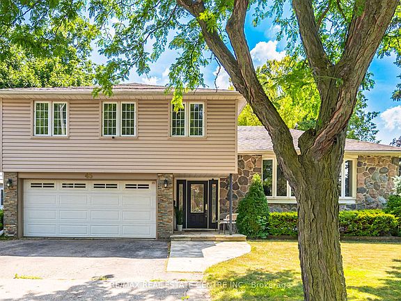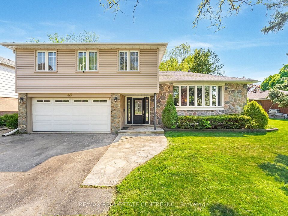 Charming 5-Level Side-Split in Prime Peel Village... Welcome to 45 Core Cres. Nestled on a quiet crescent in the highly sought-after Peel Village, this lovingly maintained home is perfect for the entire family. Steps from top-rated schools, parks, transit, and amenities, and just 5 minutes to Downtown Brampton, major highways, the local farmers market, and Peel Village Golf Course, this location truly has it all! Inside, you'll be greeted by a spacious foyer with ample storage leading into a bright den with a cozy gas fireplace and walkout, perfect as a secondary living space or an additional bedroom. Up the stairs, the main level boasts a beautiful kitchen with rich cabinetry, open to a formal dining room and an oversized living room with a massive bay window, flooding the space with natural light. A convenient powder room completes this level. On the upper level, you'll find four generous bedrooms, including a primary suite with a private 3-piece ensuite. The updated 4-piece main bathroom services the additional bedrooms. The Lower level offers a great open room with over sized window allowing tones of natural sunlight to pour through.. that can easily serve as a fifth bedroom, gym, playroom, or home office...The Basement level offers a large, functional living space with a wood fireplace, and tones of storage .Outside, the fully fenced backyard features a large deck with a walkout from the kitchen and an oversized out building perfect for storing equipment and outdoor gear. With parking for 6 vehicles (2 in the garage, 4 in the driveway), this home is ready to accommodate all your needs. Don't miss your chance to live in one of Brampton's most coveted communities.