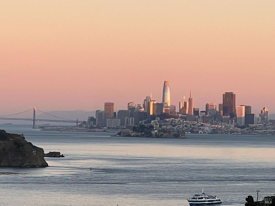 These views don't exist anywhere else at this price. From nearly every window of this luxury penthouse, enjoy unobstructed panoramas of the San Francisco skyline, Angel Island, and the Bay. Floor-to-ceiling glass transforms daily routines in the remodeled chef's kitchen with Sub-Zero refrigerator, wine fridge, quartz countertops, and upscale appliances, where even doing dishes feels enjoyable. Three private balconies create seamless indoor-outdoor living, perfect for morning coffee with the skyline or sunset entertaining with friends. Expansive living areas flow effortlessly outdoors, offering the ultimate in California living. Just a short stroll to downtown Tiburon's 15+ restaurants and charming shops, then enjoy the region's most beautiful commute on the ferry. Coffee on the way into the city, wine on the return, and sweeping views the entire ride. Each evening delivers front-row seats to breathtaking sunsets and sparkling city lights. This is Tiburon living at its finest.