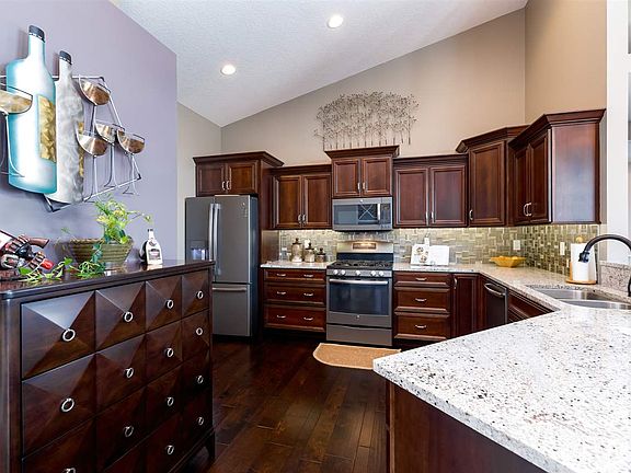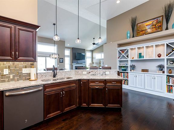 Wonderful custom built ranch home by Applestone Homes in Popular Pebble Creek. The main floor features a welcoming entry; kitchen with granite countertops, a walk-in pantry and custom built-ins; great room with fireplace, dining room, master bedroom with spacious bath, walk-in closet with built-ins plus 2 additional bedrooms & laundry. Downstairs is a big family/rec room, 2 additional bedrooms, bathroom and an abundance of storage space.