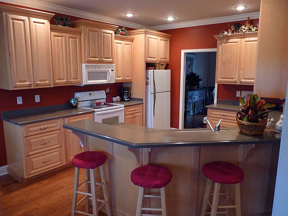 Beautiful brick home in great neighborhood with split bedroom floor plan, mbr with trey ceiling, mbr has double vanity, separate tub & walk-in shower and walk-in closet. Beautiful eat-in kitchen with formal dining room and custom made cabinets, solid surface counter tops, hard wood floors in living areas, carpet in bedrooms and ceramic tile in bathrooms. Bedrooms have large closets. Foyer has two closets. Neighborhood Description The neighborhood is great. All homes have at least a one acre lot. The neighbors are friendly and the area is very quiet. The neighborhood is two miles from Cullman city limits and five miles from downtown.