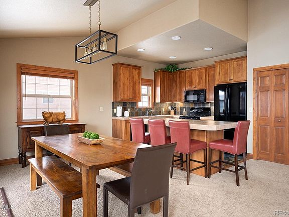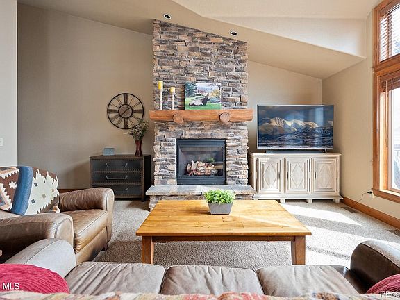 Situated to take in breathtaking mountain views, this 4-bedroom, 3-bath townhome offers a perfect blend of comfort and functionality. The covered patio features a built-in grill and fireplace, creating an ideal space for year-round outdoor entertaining. An expansive deck and a lower-level walkout provide even more opportunities to enjoy the scenic surroundings. Inside, vaulted ceilings enhance the open concept living, dining, and kitchen areas, while a striking stone fireplace adds warmth and character. A spacious rec room offers additional flexibility for entertainment or relaxation. The two-car garage provides plenty of storage for outdoor gear. Lakeside at Pole Creek is a well-planned community with paved roads and a park featuring a pond and outdoor activities.