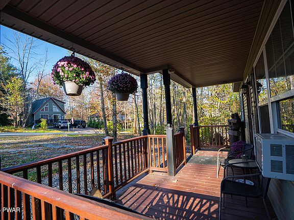 Welcome to this well-maintained and turn-key ranch home in The Hideout, a premier gated recreational community in the Poconos! This charming home features a bright open floor plan, perfect for entertaining or relaxing with family. With 3 bedrooms and 2 full bathrooms, including a spacious primary suite, there's plenty of room for everyone to spread out and enjoy. Pristine hardwood floors give a contemporary feel to the charm. Step outside to the gem of this home - a spacious screened porch off the back of the home, ideal for morning coffee or yoga, naps in the hammock, summer dinners, evenings by the fire pit, or simply unwinding amongst the serenity of peaceful treetops. Ideally located just a short drive to the main beach, pool, ski hill, golf course and tiki bar, you'll love the convenience of having top amenities right at your fingertips. The Hideout offers lakes, beaches, pools, a golf course, ski hill, clubhouse, restaurant, bar, fitness center, and more--all within a vibrant, year-round community. Whether you're looking for a full-time residence, vacation getaway, personal oasis or investment opportunity, this home comes fully furnished and is ready to be enjoyed or immediately rented!