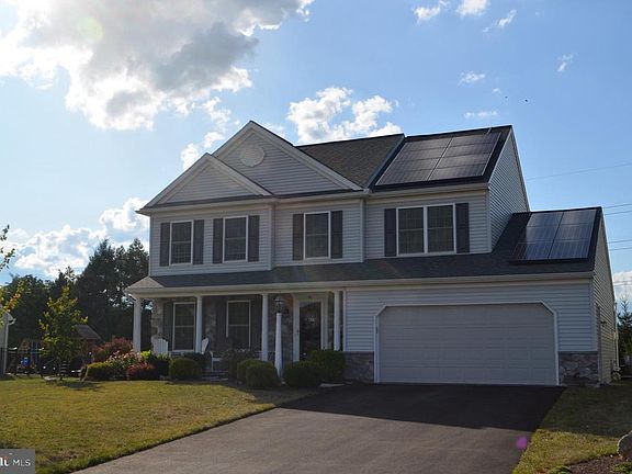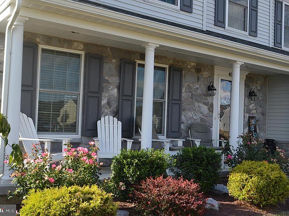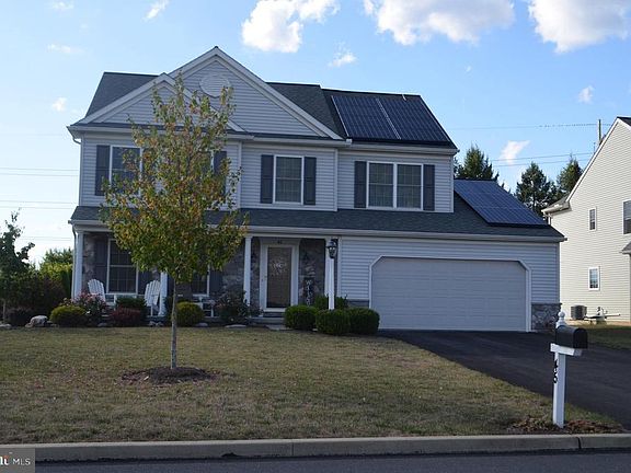 "kimble" model built by EG Stoltzfus. Lovely, 4 bedroom, 2.5 bath home on one of the larger lots in community. First floor features large family room with gas fireplace, large dining room with hardwood floors, kitchen with new granite countertops, stainless steel appliances and breakfast room with doors leading out to lovely stamped contrete patio with a hot tub and room for a fire pit. Second floor features 3 bedrooms, laundry, full bath and large master suite with large walk in closet. Large backyard with a shed that has electric. Like new condition. Move in ready!