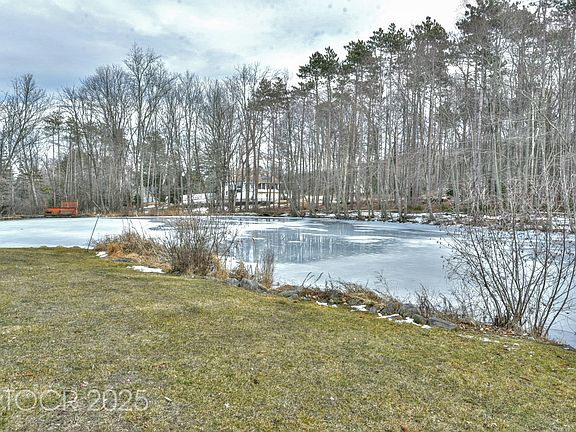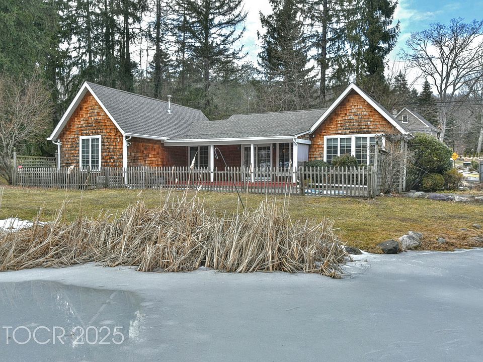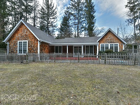 Beautiful cottage on park-like property with breathtaking views of manicured property and pond. Large fenced-in yard with covered porch. Kitchen has gas range and center island w/seating for 4 with additional seating area. Living room with cathedral ceilings, built-in bookcase and large windows overlooking the picturesque property. Primary suite with en-suite bath and second bedroom and hall bath. Beautiful home in wonderful area!