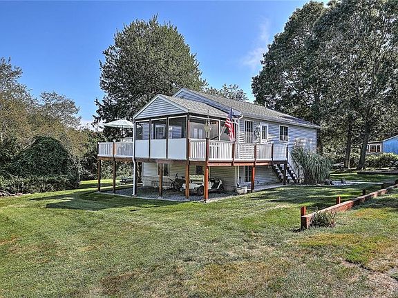 Nestled amidst the picturesque landscapes of Prudence Island, this charming coastal retreat at 45 Daniel Ave in Portsmouth, Rhode Island, offers an exceptional opportunity to embrace the tranquility and beauty of coastal living.This property is walking distance from the Ferry and public beaches, and offers a peaceful island escape. The home is a well maintained 3 bed, 2 bath raised ranch with a large porch and screen room on just over a quarter acre beautiful corner lot. Vaulted ceilings and large windows open up the main floor to a light and airy space capturing some beautiful views of the Bay. The open floor plan creates a seamless flow throughout the house. The primary bedroom resides on the main floor, with the other two bedrooms on the lower level. Enjoy the serene island life on the raised porch and screened in section. 045 Daniel ave is a year round residence, and continual ferry service provides residents of Prudence Island to commute to the mainland for work and school. Come take a look at this charming Narragansett bay home with summer and island living just waiting for you!
