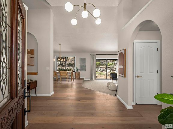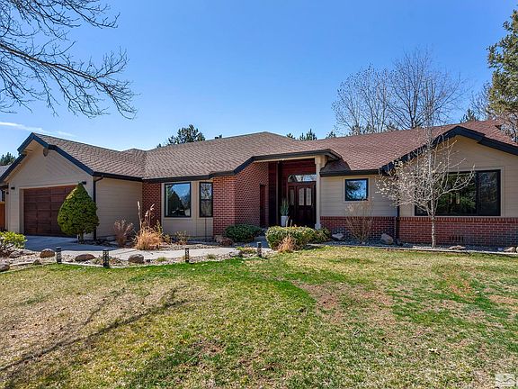 Recently remodeled single-story home located in Fieldcreek Ranch on a private cul-de-sac and large 1/2 acre lot. The following improvements have been completed: Replacement of all windows and sliding doors, freshly painted exterior and interior, new manufactured white oak hardwood flooring throughout, new carpet, and completely updated kitchen and baths. Kitchen has been completely redone with a double oven and induction cooktop. (see extended remarks), Kitchen also has beautiful modern slim-framed cabinets, and island with bonus sink, finished in oak chevron butcher block. The massive primary bathroom suite has been entirely renovated with a large glass-enclosed shower, freestanding tub, gorgeous wall and floor tile, and also includes a large walk-in closet. Primary suite is privately located on the opposite side of the home from bedrooms. Bar area has been updated with floating shelves and a new sink and beverage fridge. Home also features an office/bedroom on-suite located in the front of the home, complete with a private entrance. Third garage space has an added privacy wall and is being used as a home gym. A short dive to ski at Mt Rose, swim in Lake Tahoe or fly from Reno Tahoe international airport. Also close to numerous hiking and mountain biking trails.