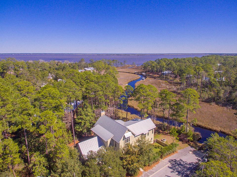 Unique home offered for sale on sleepy McQuage Bayou in Pt. Washington. This custom house drawn by renowned architect Geoff Chick features 4 bedrooms, 4.5 baths with magnificent Bayou & Bay views from almost every room! The Great Room features a chef's kitchen as well as the dining and living space and measures 22'x52' with cathedral ceiling and interlocking antique beams reclaimed from a 19th century structure. The upstairs features wide plank walnut floors with new carpet and tile downstairs. Impact rated windows and doors and 2 screened porches make the views from this home breathtakingly tranquil and bug free! There is a 2 car garage with two storage closets and the attic space is air conditioned. A full inspection was recently completed and all punch items were addressed. NO HOA