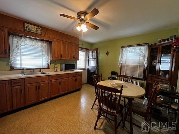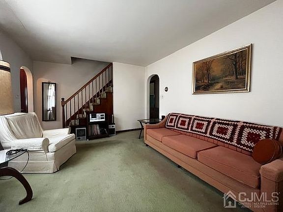 4 Bedroom cape with garage **Entrance foyer with closet-Formal living room radiator oil heat Eat in kitchen with plenty of counterspace, electric stove and refrigerator hallway with linen closet full bath also with a second linen closet two bedrooms down please note the hardwood floors inside the closets , stroll upstairs to 2 additional bedrooms with tremendous amount of closet Space. Rear covered porch and nice size backyard, detached garge and plenty of parking in the long driveway, around the corner to a park and close to major roadways rt 9. GSP, 287 and outerbridge crossing.